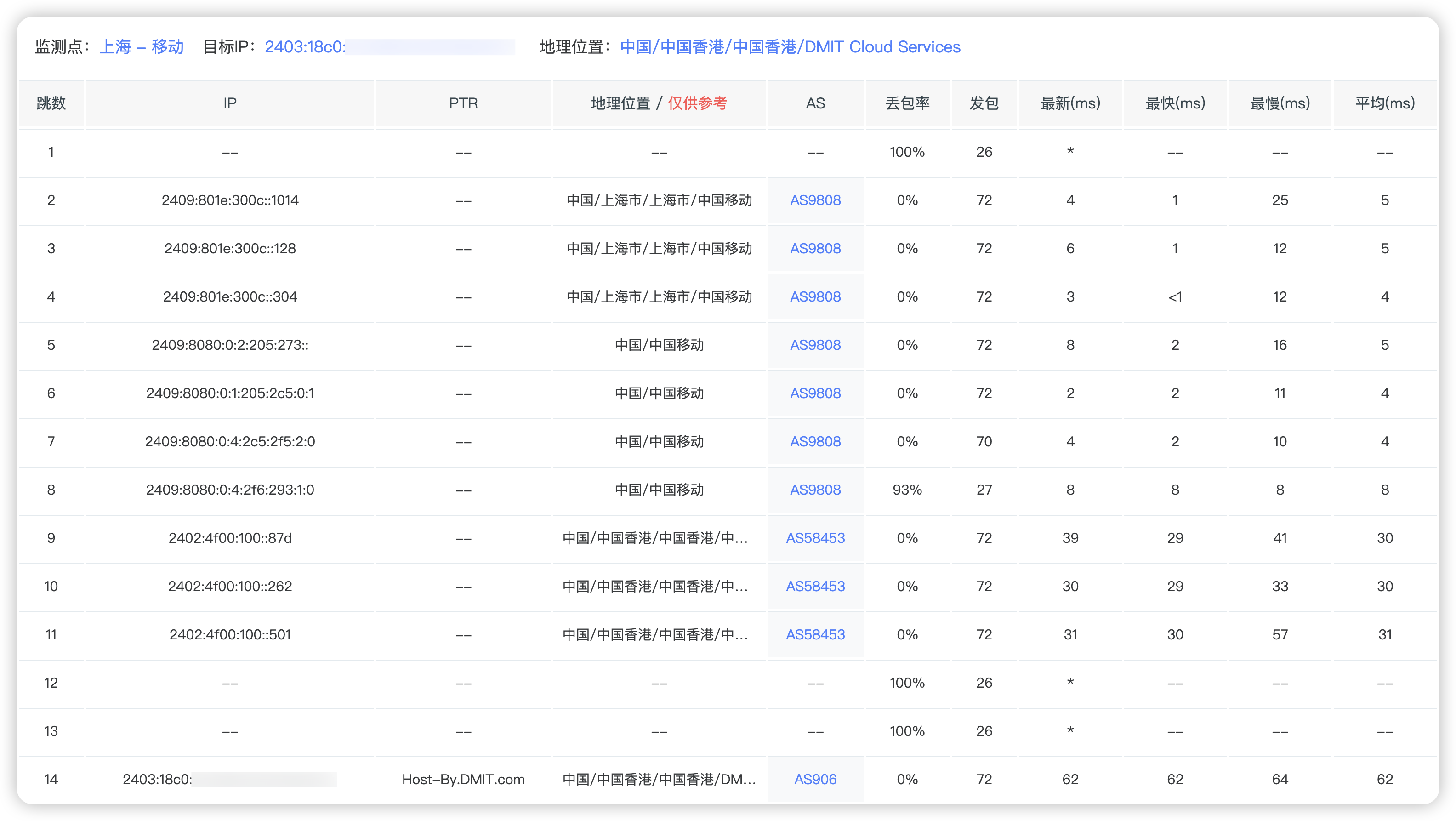 6 221.183.89.174 28.63 ms AS9808 China, Shanghai, ChinaMobile